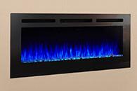 The Allusion electric fireplace series embraces modern design by combining linear proportions with a multitude of flame and ember bed LED lighting themes. Additionally, intuitive operation is exemplified by the standard remote and touch controls on the fireplace front.